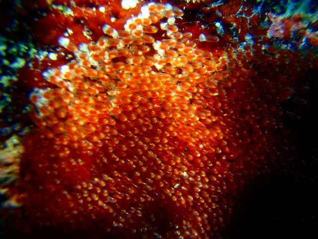 クマノミは一生懸命にヒレを動かして卵に新鮮な水を送っていましたよ。