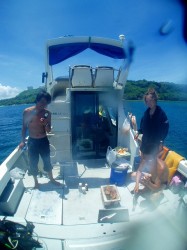 ダイビングのうち、移動時間はほとんどミニマム。あとは35分ほど、「全く動かないダイビング」だったので、3mmのワンピース(+フードベスト)を着ていた私はちょっと肌寒くなってくるほどでした。