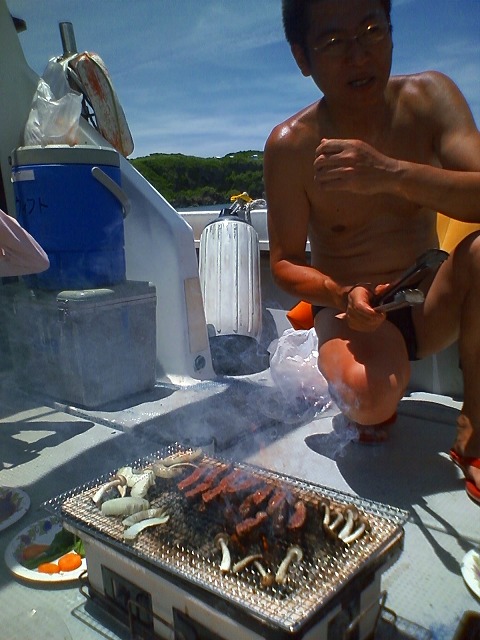 この日は水面にキビナゴが大量に群れていました。そして、頑張ったガイドに敬意を表して?私の写真も撮ってくれていました。