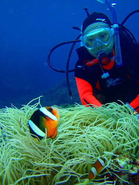 クマノミ、ハマクマノミ、ハナビラクマノミ、セジロクマノミ、カクレクマノミ。。。特に、カクレクマノミの住む立派なイソギンチャクが多いんですよね。