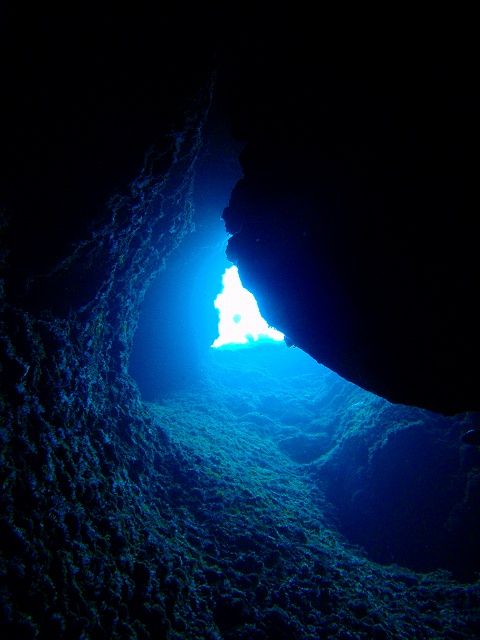 ドロップオフ沿いに壁を「なめるように」生物を探したり、洞窟をくぐったり。