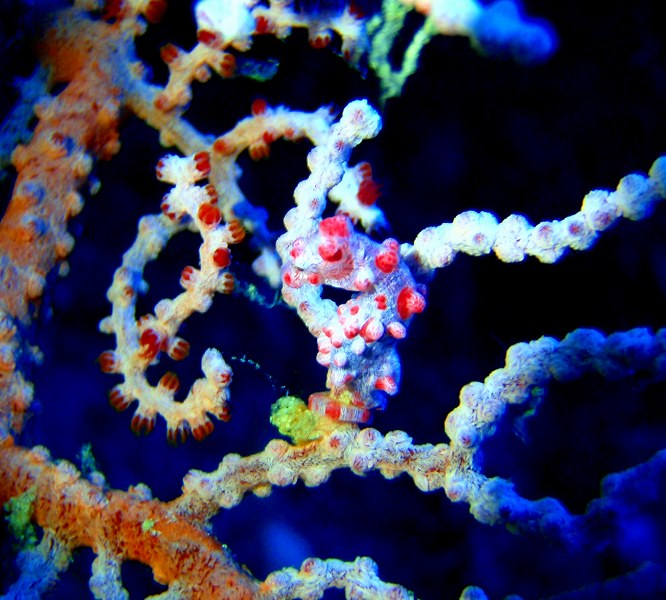 このポイントは、マクロもそうですがユビエダハマサンゴの群生が素晴らしく、茶色い色のサンゴに、緑色のサンゴが入り混じり、とっても綺麗です。最近は、スカシテンジクダイがとっても増えてきていて、とっても賑やかですよ。