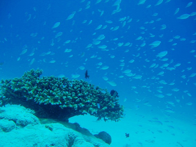 ③黒島南 最後は地形も面白いし魚群も多いポイントいです。ハナゴイの群れはいつ見てもきれいです。グルクンの群れも どぅわ~~~っと居て興奮しますよー。