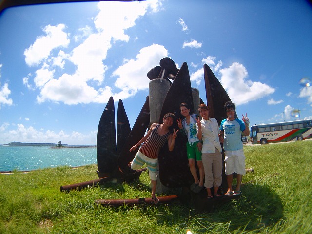 僕は伊江島方面へ行ってきましたー。お客さんは4名。本日最終日の方もいらっしゃるのと、本部(もとぶ)へ向けて走りながら見る洋上の穏やかさに、今日は行ける!と期待をしていた土門チーム。でしたが双眼鏡でよ~く見てみると伊江島の発電用風車がかなりの勢いで回ってる・・・