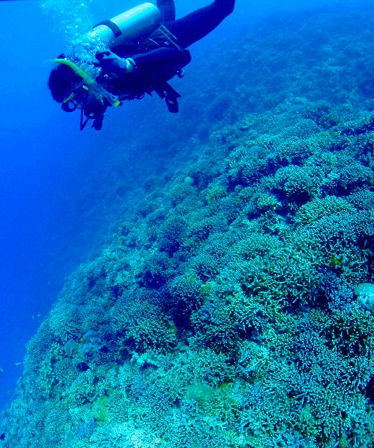 ②ドラゴンレディ ずっと天気の良い 今回のGW。白い砂地ダイビングの気持ち良さを満喫できるコンディションとも言えます。浅い水深から沖合に向けてす~~~っと落ちてゆくこのポイントは、青のグラデーションの変化に気を付けて潜っていると面白いですよ。