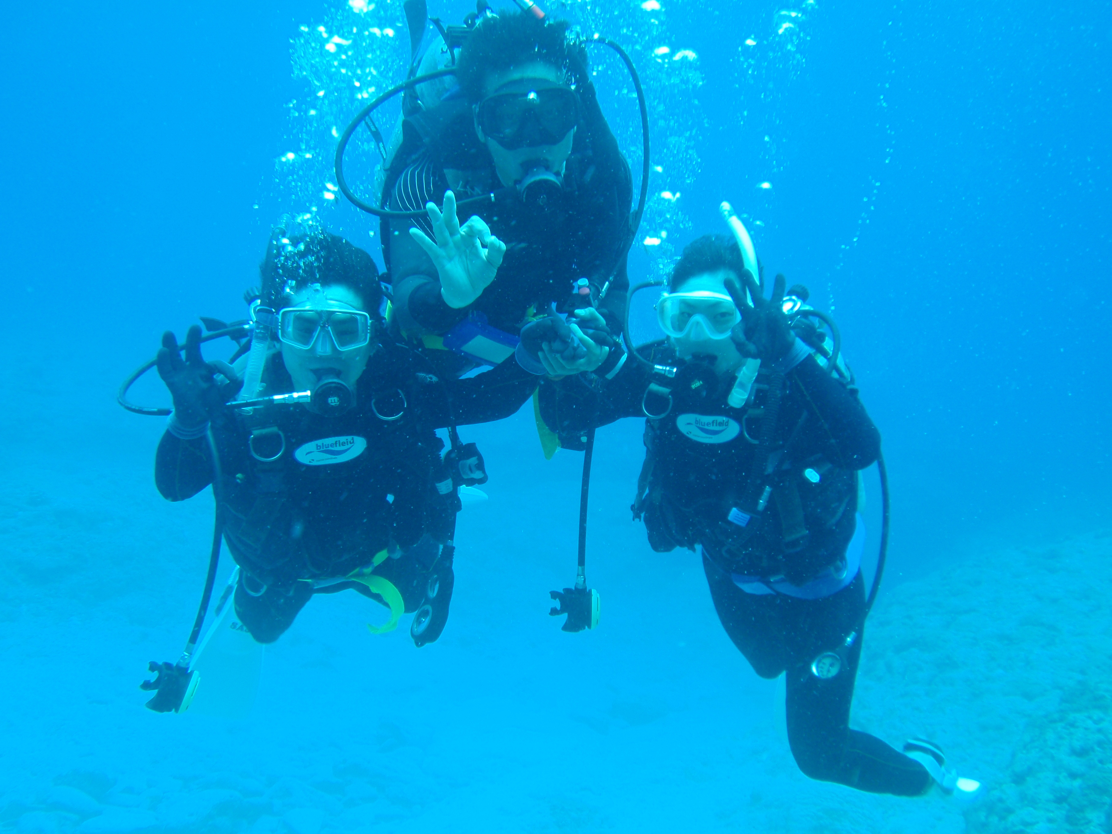 さすが水泳のプロだけあって、皆さんとってもお上手。二本目から参加したお嬢さんも、すいすい潜降でき、スキルの練習も問題なし。