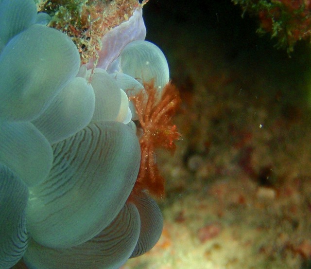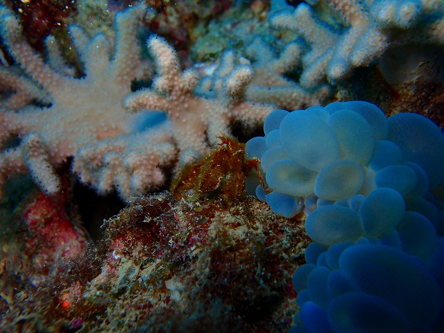 ミズタマサンゴを丹念に探していけばバブルコーラルシュリンプやオランウータンクラブなどが隠れています