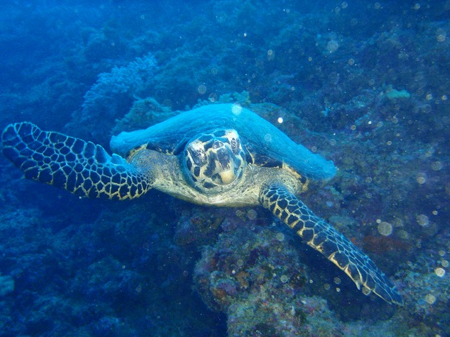 グリーンマーカーでは去年からちょくちょく見かけるようになった海ガメを今日も見つけることができました。