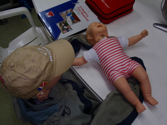 「子供の為のケア」ではベビーアンと言う赤ん坊サイズの練習用ダミー人形を使うのですが これが重さといい色んな点で赤ちゃんそっくり。
