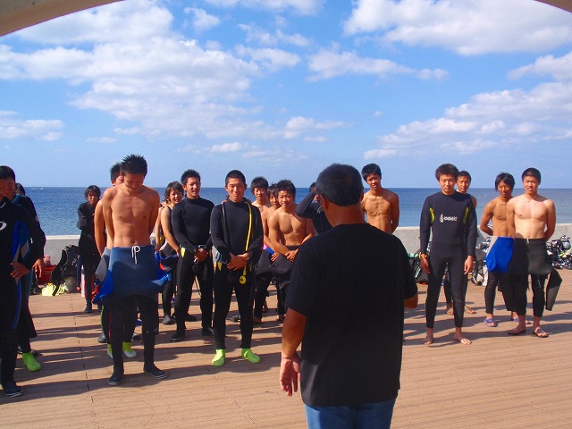 さてさて 無事開校式も終え ウェットスーツに着替えたら、器材の使い方の説明を受けます。