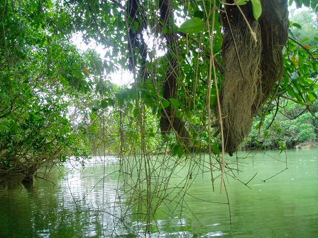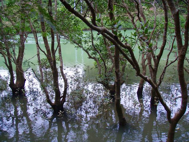 時折、「入り江」のようになっているところで、海水と淡水が混ざり合った喫水域ならではの生物を観察します。