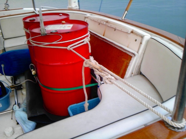 海況が良い日は、日の出から日没まで、めいっぱい走れるように予備の燃料のドラム缶を積んでいます。