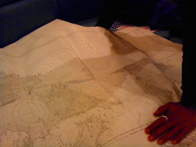 出航の可否や航路と目的地の方針を検討しているのでしょうね。 |