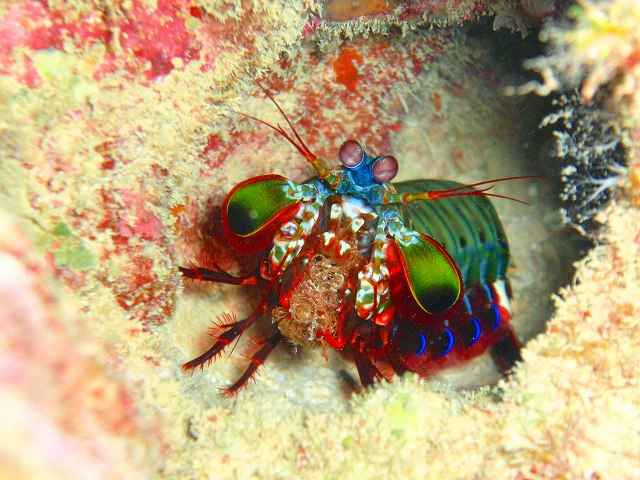 キレイにフラッシュを当てると、とーっても色鮮やかなのがわかります。私は、個人的にはこのロボットみたいなお目めが好きなんです。