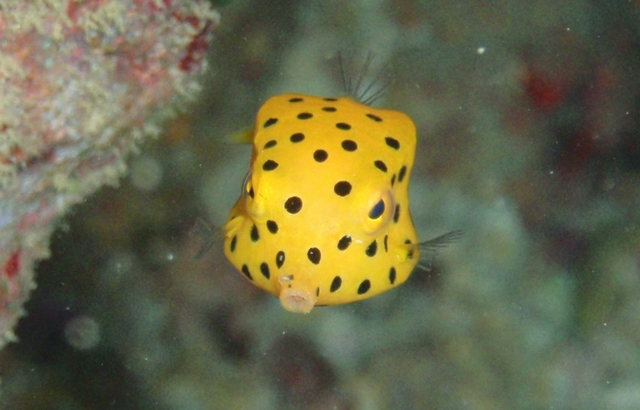 まずは、水中の「アイドル系」、水玉模様がとっても可愛い、ミナミハコフグの幼魚。