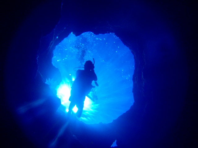 ここ渡名喜島の地形ポイント、ドロップオフにそのホールはポッカリ口を開いてます。