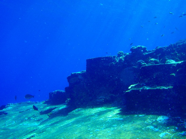 浅瀬にはいくつもの穴やクレパスがあり、地形も満喫!そしてこんな遺跡みたいな所もあるんです。