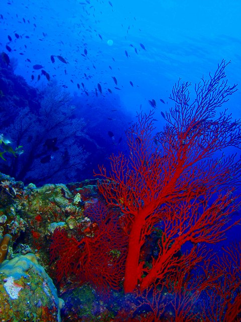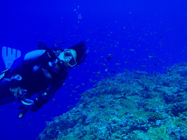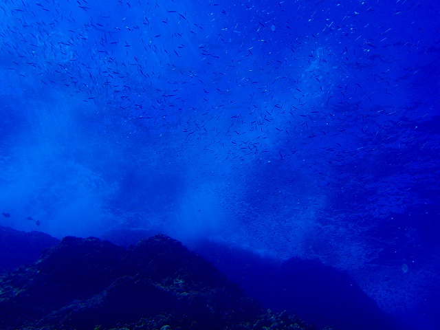 、グルクンの大群にカスミチョウチョウウオ・キンギョハナダイの乱舞、濃い魚影がスライドショーのように目の前に流れて行きます。