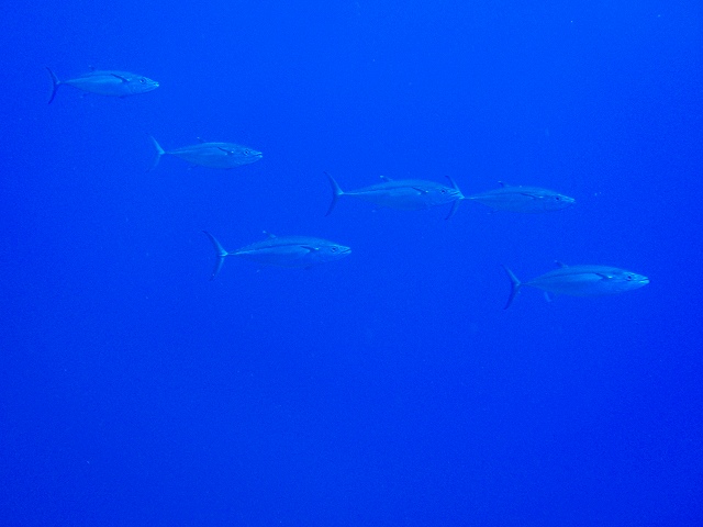 水面近くではキビナオの群れ「キラキラと超きれいです」