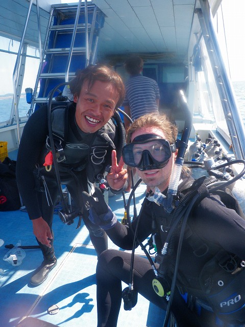 2本潜り終えてエグジットした 僕に「土門さーん カジキいるみたいですよ~」と声をかけてきた他ショップのスタッフ。