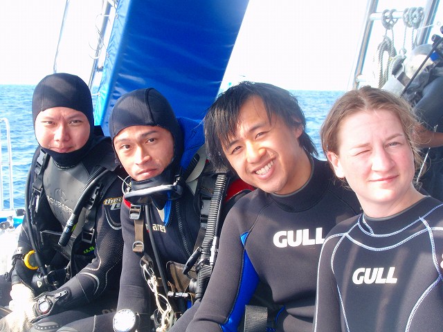 カナダからのお二人は、きれいな魚を喜んでくれますが、「ウニの研究家」さんたちは、なにやらサンゴを接写していたり、私のわからないものを撮っています。