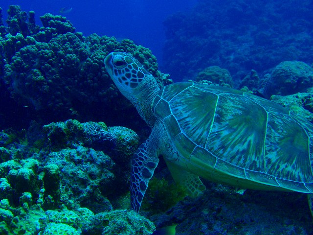 そんなのを見ながら泳いでいたら、なんと、カメさん発見!ケラマには行けなかったからあきらめていたカメを見られて、皆さん大喜びでした。