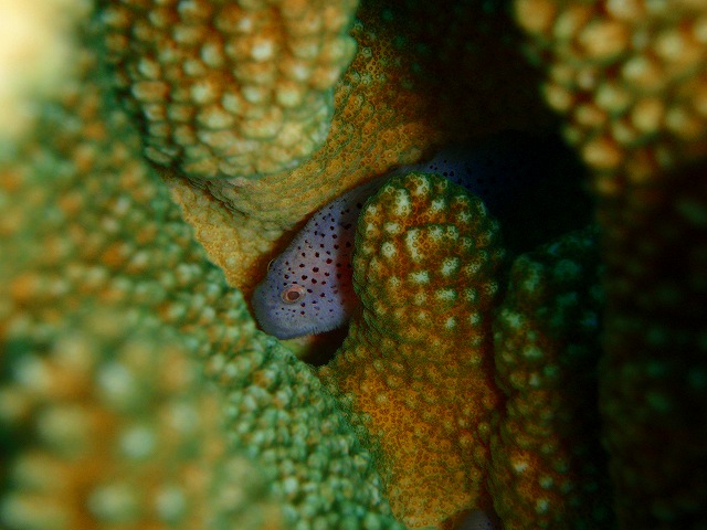 思った以上にサンゴが多いことにビックリ。砂地を泳いでいくと、シマカスリハゼがいるゾーンへ。そろそろそろーっと近寄って、観察しました。