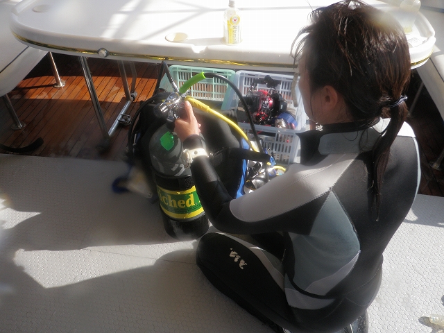 それでは、背中にエンリッチド・エアのタンクを背負って、いざ出陣!