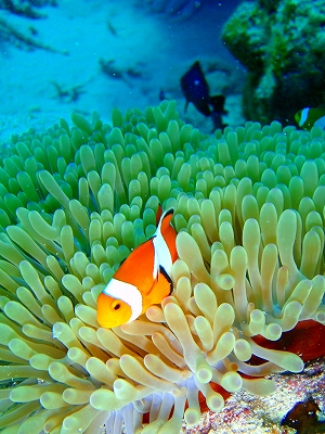 写真の被写体になってくれたのは、カクレクマノミやグルクンの群れ、そしてハナヒゲウツボの幼魚など。