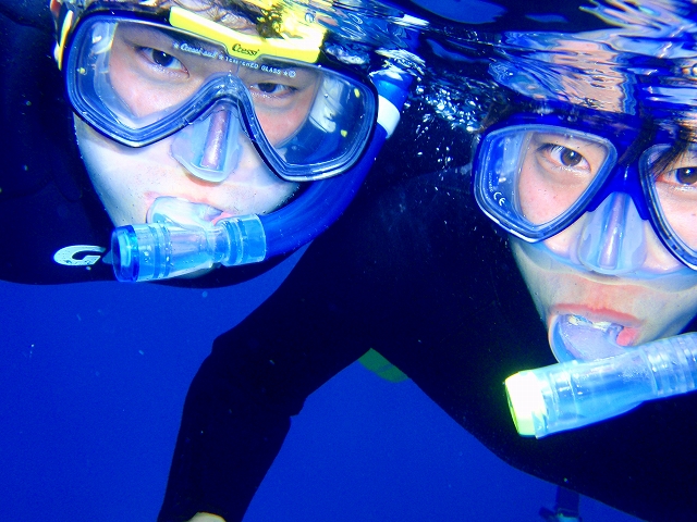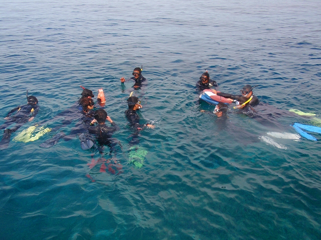 まずは、みんなでスノーケル。いくつかのチームに別れて、呼吸や泳ぎ方の練習。