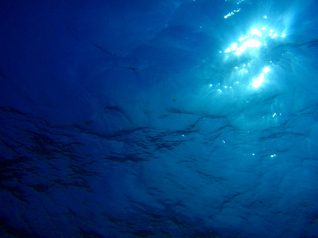 初めて見る水中世界。ふと見上げてみると太陽も出ています。