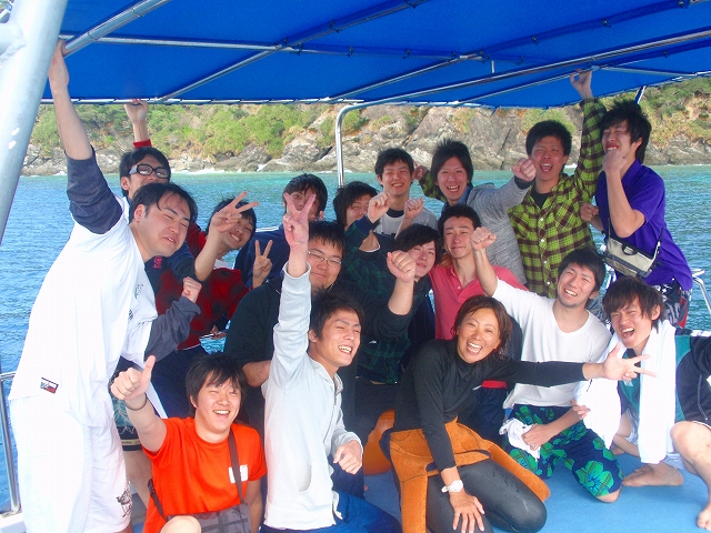 大谷率いるファンダイビングチーム、その他に17名の卒業旅行のワカモノたち。