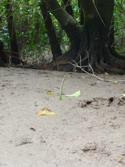 今日は干潮の時間帯のカヤックだったので、マングローブの根もとの泥干潟がとっても良く見れました。