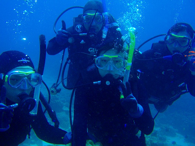 大谷は体験ダイビング、川瀬がアドバンスド講習、山崎ファンダイビング、の編成で楽しみました。