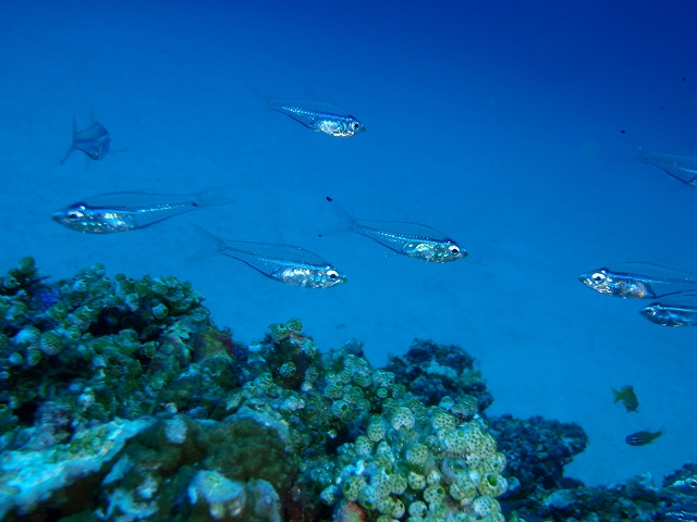 そしてエダサンゴの上に群れるデバスズメダイ、キホシスズメダイやグルクンの乱舞をみたら