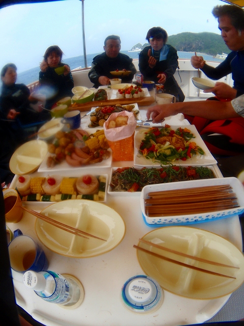 そして、お昼は船長手作りのカレーや豪華なオードブルを食べてお腹を満たし