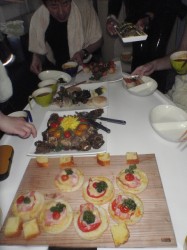 そして、待ちにまったお昼ごはんタイムは、特製カレースープをサイドに、色鮮やかなミートローフ、黒胡麻で和えたパスタや、ミートローフ、プチピザに、骨付きウインナー、季節の野菜。。。