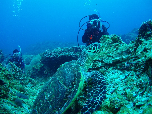 2本目 「見れるならウミガメをじっくり見たい。」ということでココの主役 リュウキュウキッカサンゴを眺めた後でカメ発見。