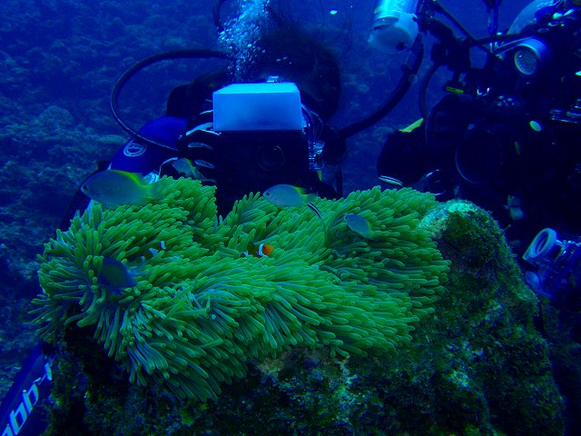 しっかりお二人は激写してましたよ。 ガイドとしては自分で見つけたわけじゃないので 複雑な心境ですが喜んでいる姿を見ているとなんか ホッとするのでした。さてその後は予定通り たくさんいるカクレクマノミをいろんな水深&アングルで撮影しまくって船へ。