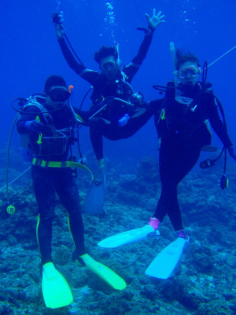 3本目では水中でファンダイビングチームと遭遇して3人での写真撮影も実現。とっても楽しそうに写ってますよ~。