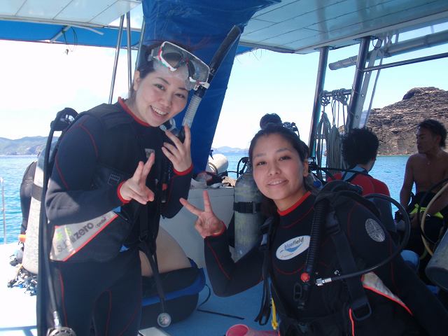 今日の沖縄も、晴れ!いい天気の中を、スウィフト号は、ファンダイビングにご参加の方、体験ダイビングの方、そして姉妹でダイビングのライセンスやアドバンスド講習を受講中のガールズを乗せて、慶良間へ。