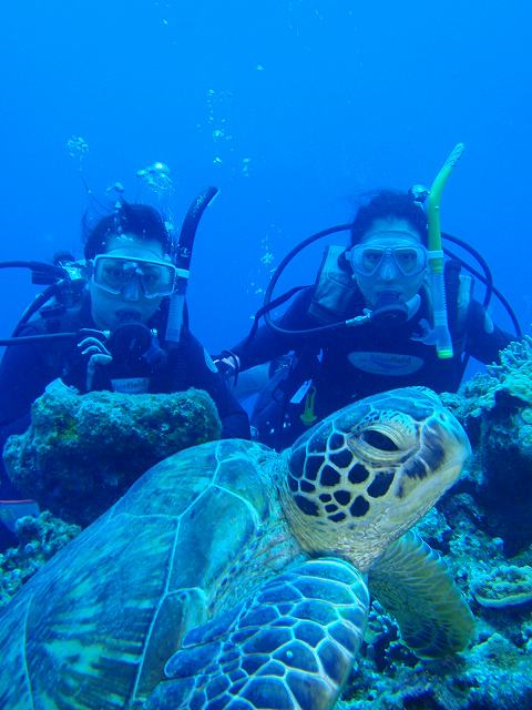 サンゴいっぱいのポイントや、カメに会えるポイントなどで講習、写真の練習もバッチリでしたね。