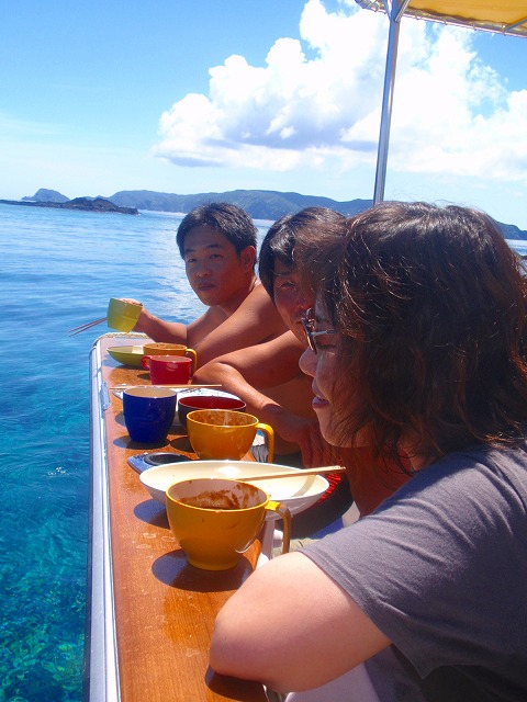 山崎と川瀬は、ビギナーのファンダイバーチームとゆっくり潜ったり、イギリスからお越しの女の子二人組と体験ダイビングやスノーケルをしたり。