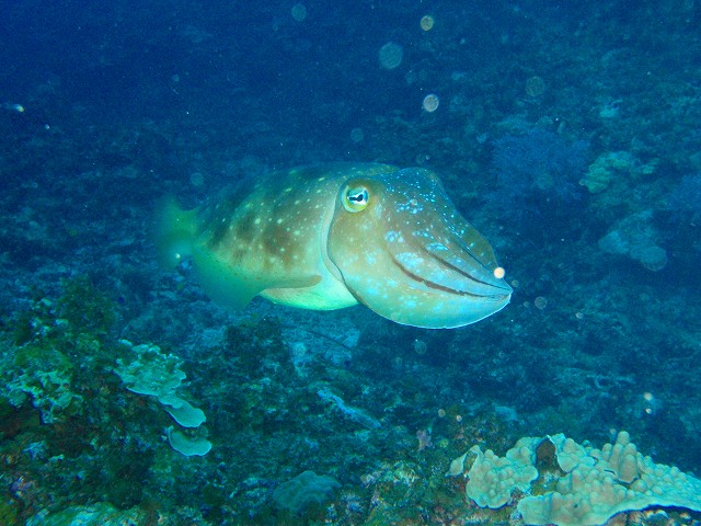 3本目はマンタ狙いということで、黒島南。あちらこちらと探し回ったのですが、残念ながらマンタとの出会いは次回に持ち越し。それでも大きなゴシキエビやコブシメを見れたり、とってもたくさんのグルクンと出会えたり、秋の慶良間を満喫の1日でした。
