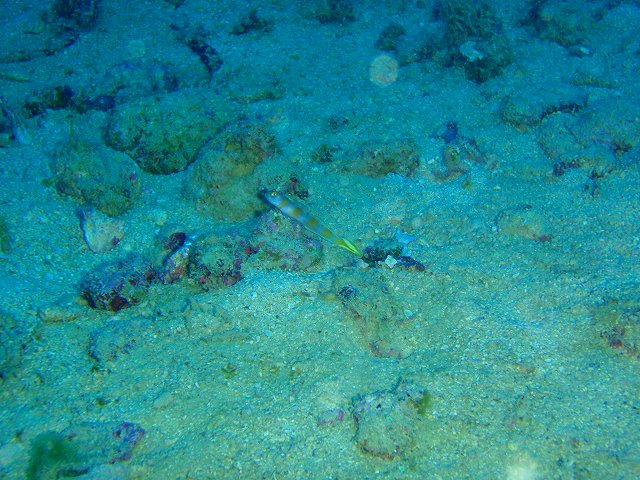 マンツーマンでじっくり潜ることにしましたよん。久しぶりに自分の器材を使うから心配だなーというお客さんでしたが 潜ってみたら問題無。気になるウエイトの重さもバッチリでした。まずはクマノミパラダイスでクマノミ各種を観察して・・・モンハナジャコやコホシカニダマシ、いろいろなウミウシ、ガーデンイールにジーーーッと隠れるハリセンボン。ガラスハゼやミツボシクロスズメ等たくさんの生物を見てきましたー。