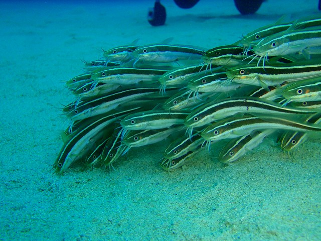 ゴンズイが固まって泳いでいたり、スズメダイ系の幼魚やゴマハギの幼魚など小さくかわいらしい生物を堪能しました。