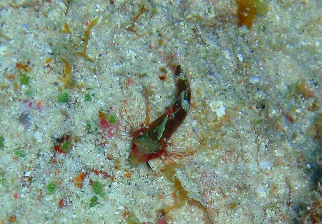 今の時期は幼魚も多くて、今日はツユベラの幼魚、クロスズメダイの幼魚、オニハタタテダイの幼魚を見たり。