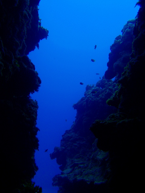 アウトリーフは、沖に向かって泳ぐと、ガクッと落ちるドロップオフ。