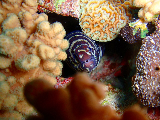 アリガーでは、ゼブラウツボが顔を出していました。