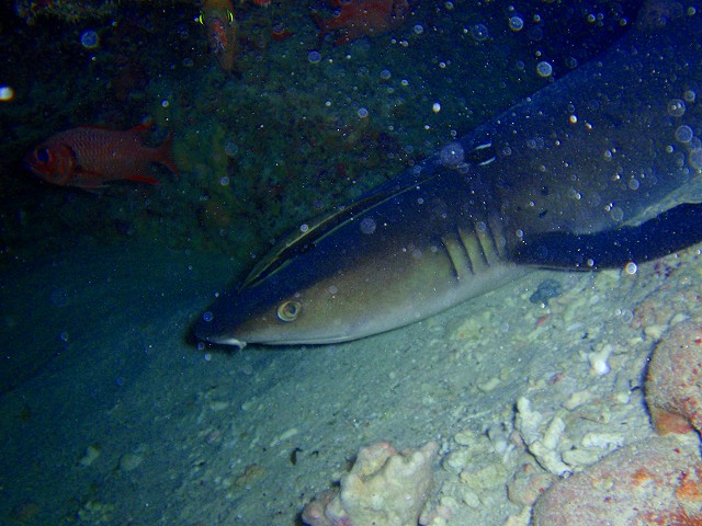 五十嵐・山崎チームは、大きなネムリブカを覗いてきました。